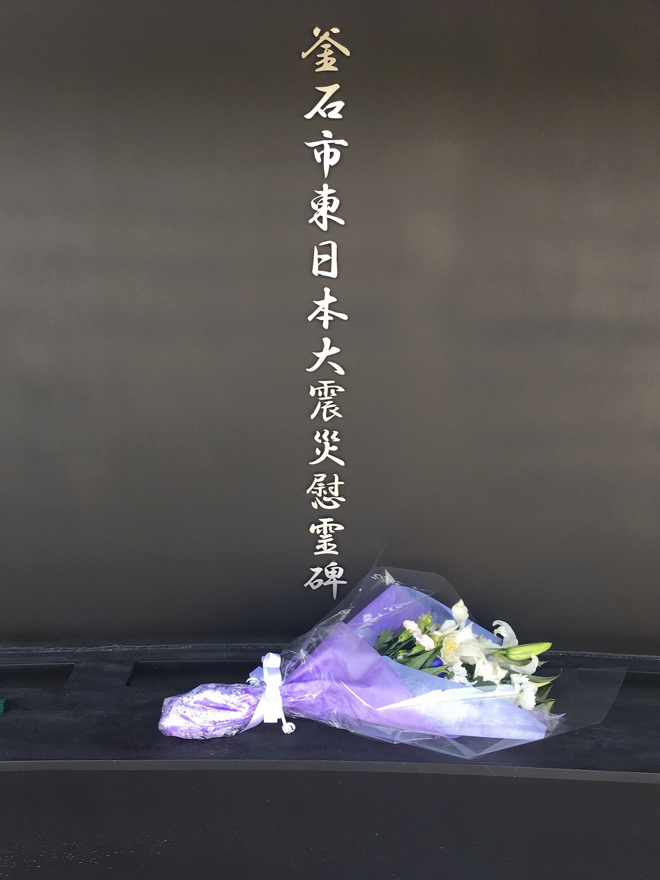「釜石祈りのパーク」は「津波による犠牲をなくし、未来の命を守るために」を基本理念とし、東日本大震災の犠牲者を慰霊、追悼する施設として2019年3月に竣工したものである。 鵜住居駅前地区の浸水高(11メートル)を表す津波高のモニュメント、犠牲になられた方のご芳名板と献花台を備えた東日本大震災慰霊碑、防災市民憲章の碑、多くの方々が犠牲となった鵜住居地区防災センターの跡地であることを記す防災センター跡地碑から構成される。