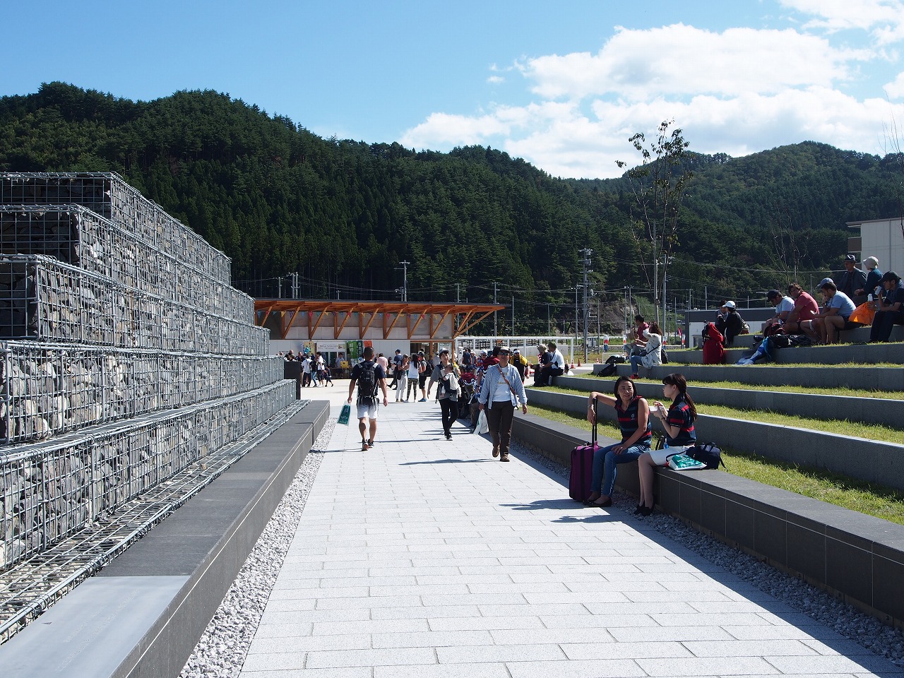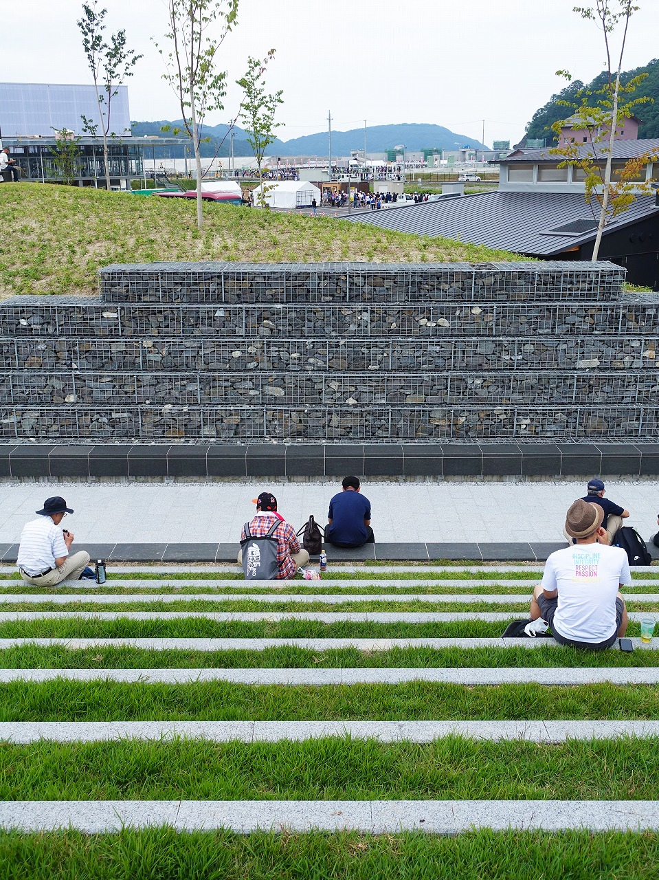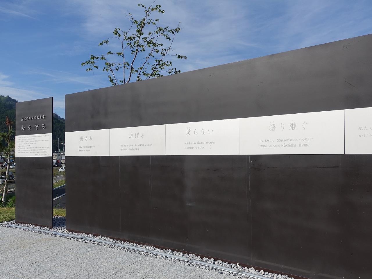 岩手県釜石市の三陸鉄道鵜住居駅前には、「東日本大震災の記憶や教訓を将来に伝えるとともに、生きることの大切さや素晴らしさを感じられ、憩い親しめる場」として、複数の公共施設を一体的に配置したエリアが広がる。防災学習の施設や観光交流拠点、そして「釜石祈りのパーク」で構成され、周辺には「釜石鵜住居復興スタジアム」なども整備されている。