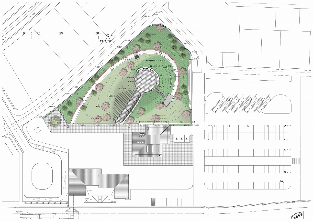 東日本大震災による甚大な被害を被った釜石市において、犠牲者慰霊追悼施設が被害状況の大きかった鵜住居地区の防災センター跡地に整備されることとなった。当該施設(メモリアルパーク)のあり方について、遺族や市民、学識経験者などを含む検討委員会で、数年に渡り議論がなされた。その結果、「未来への手紙」という考え方をカタチとして結実させたのが「釜石祈りのパーク」である。犠牲者への慰霊・追悼の他、繰り返しもたらされる津波被害に対して、未来の命を守るメモリアルとしたいという、犠牲者を代弁するような遺族や市民の強い決意がそこにはあった。その基本理念のもと、敷地全体を丘状(墳墓状)とし、耐候性鋼板(鉄の町であることも考慮)を使用することで震災の記憶と教訓を後世に継承するメモリアルパークを実現することを目指した。