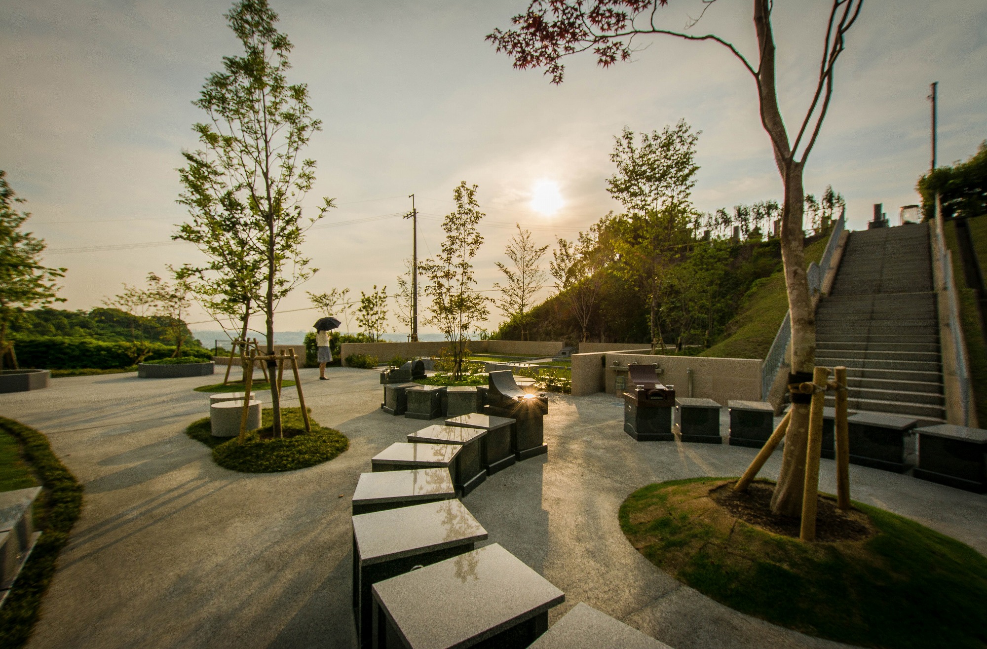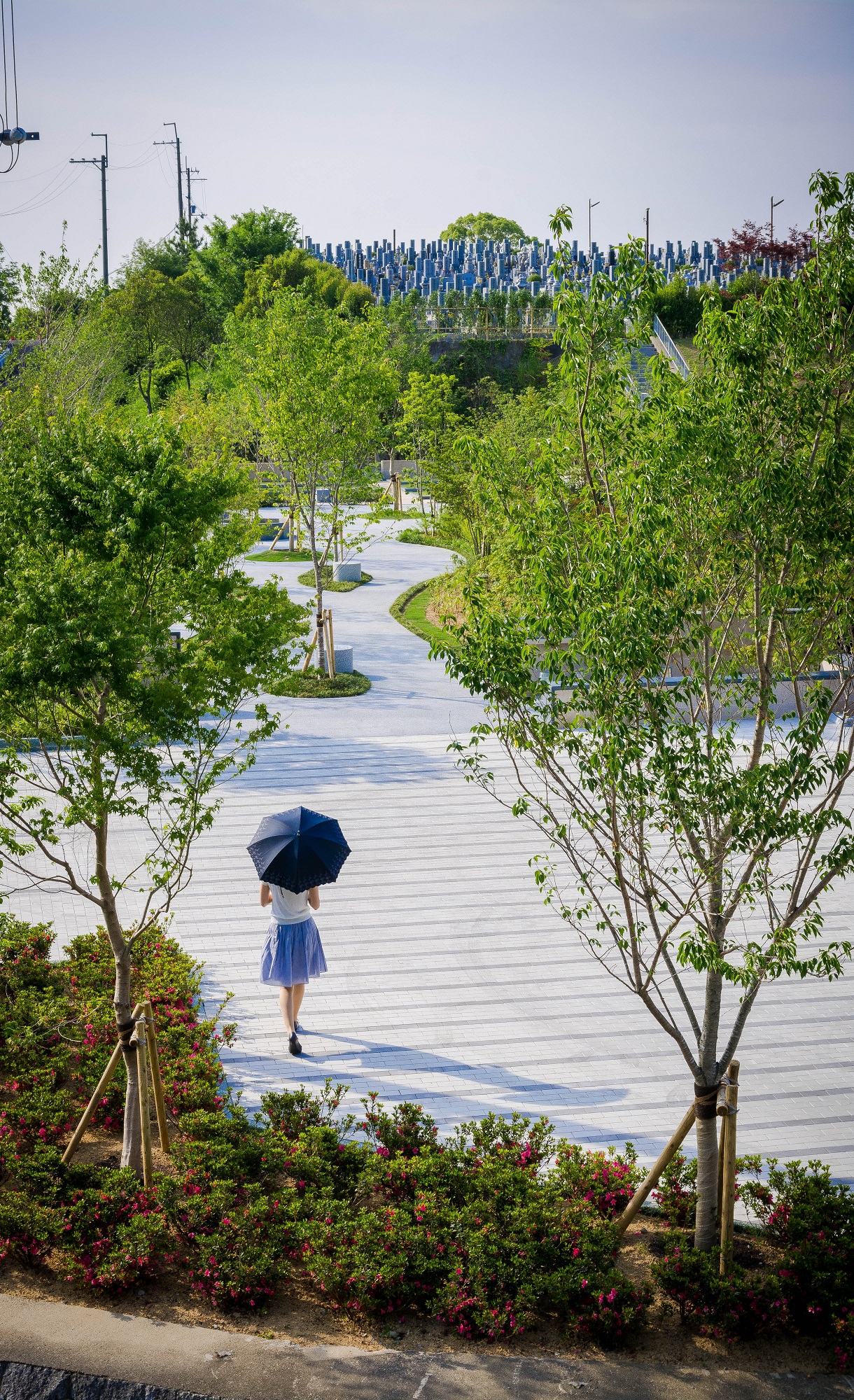 の4タイプがあり、樹木との関係を自身で決める選択性の高いしつらえとなっている。園路は樹木の育成を良好にする透水性舗装を採用し、滑らかな曲線形状で奥行と回遊性を持たせることで、森の中を巡る楽しさや期待感を歩行者に与える空間となっている。また、園路の途中には来園者が休憩できるベンチを点在させ、故人と共に四季を愛でたり、思い出を語らう憩いの場を設けている。