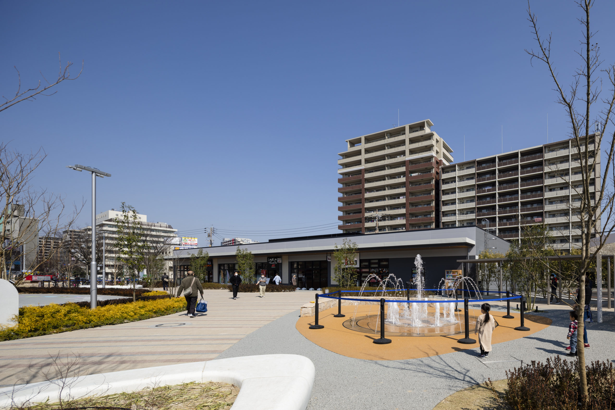 「水・緑・生物などの自然要素と、滞在する来客者が使いこなす季節感のある風景の共創」をランドスケープデザインのコンセプトとして、緑豊かな商業空間を目指した。