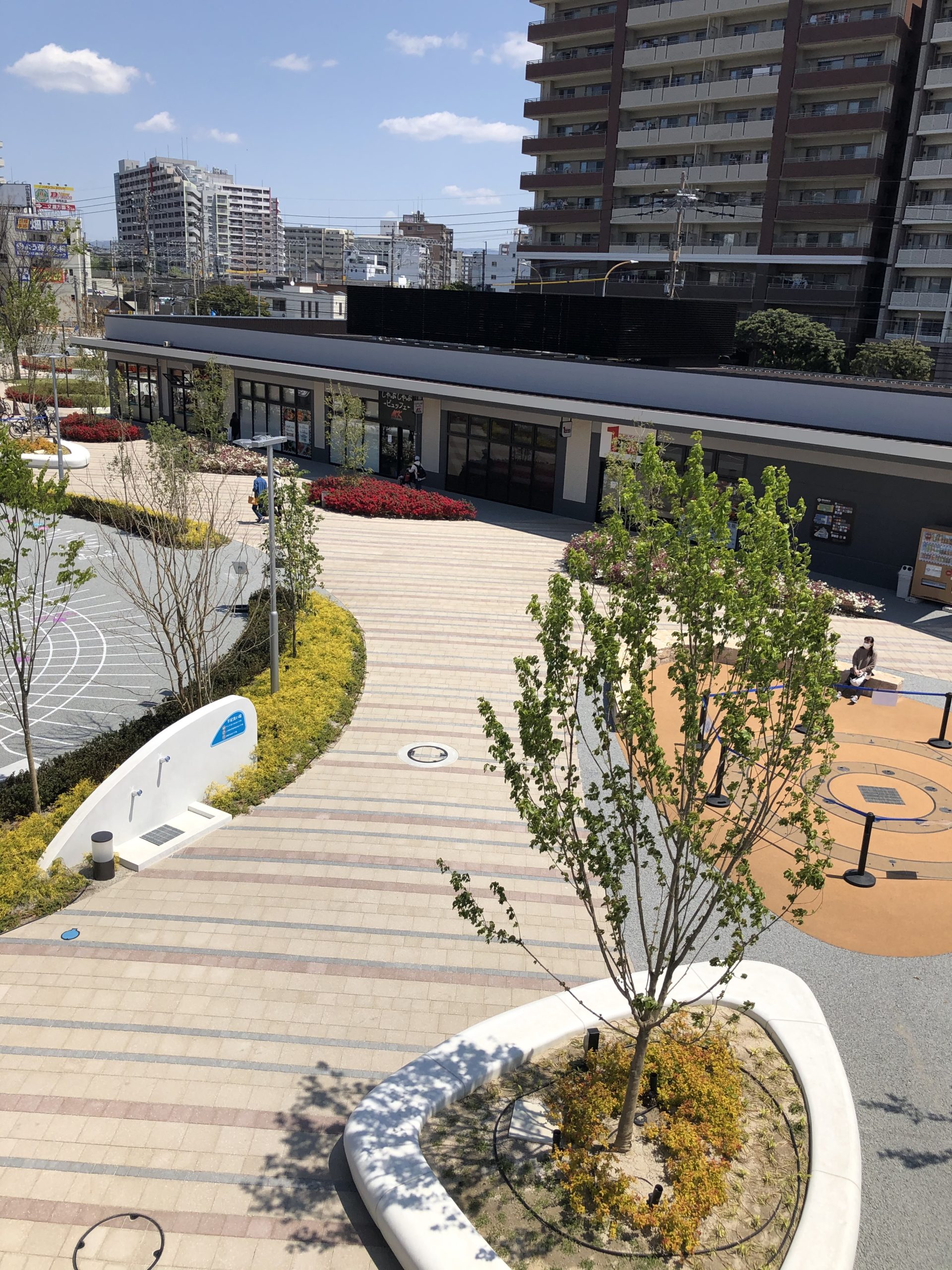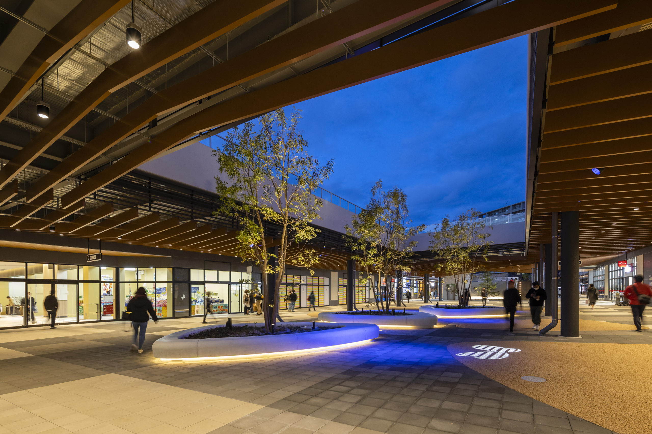 本エリアの街区が蝶の羽の形状をしている由来から「パピヨン」と名付けられ市民に親しまれており、土地の記憶を継承するデザインとして、蝶の羽の形状をデザインユニットとした多用な広場を創造した。具体的には、子供たちが遊べる噴水や遊具・多目的広場などの「プレイランド」、吹き抜けから空と緑を感じながら休憩できる「天空ガーデン」、テイクアウトした飲食物をもって一息つく「フードコートガーデン」などを計画した。