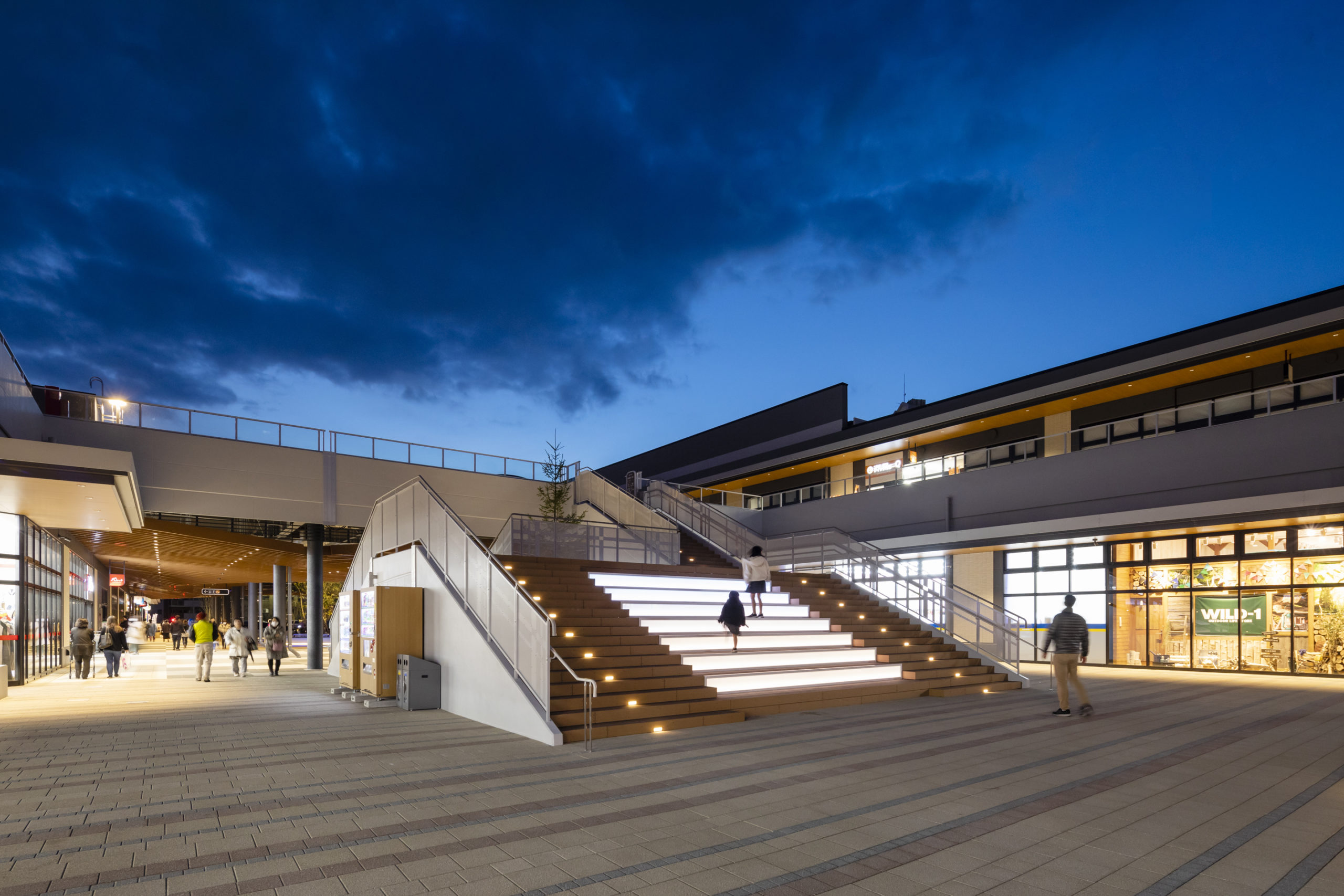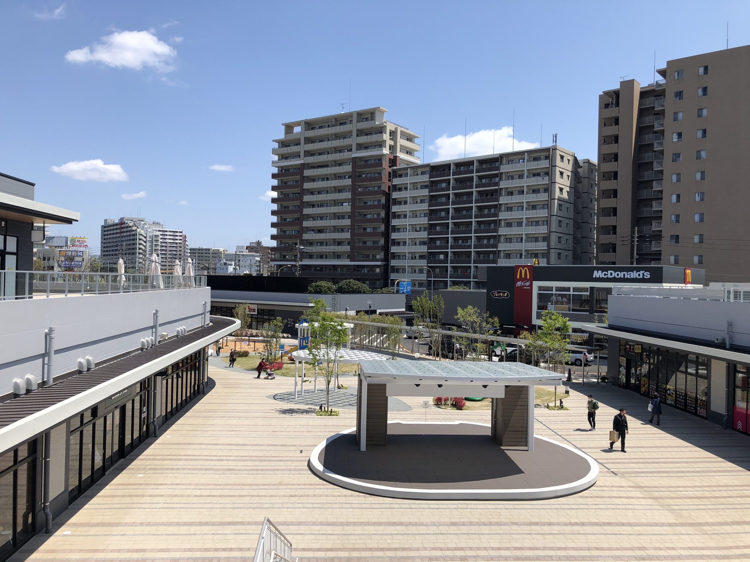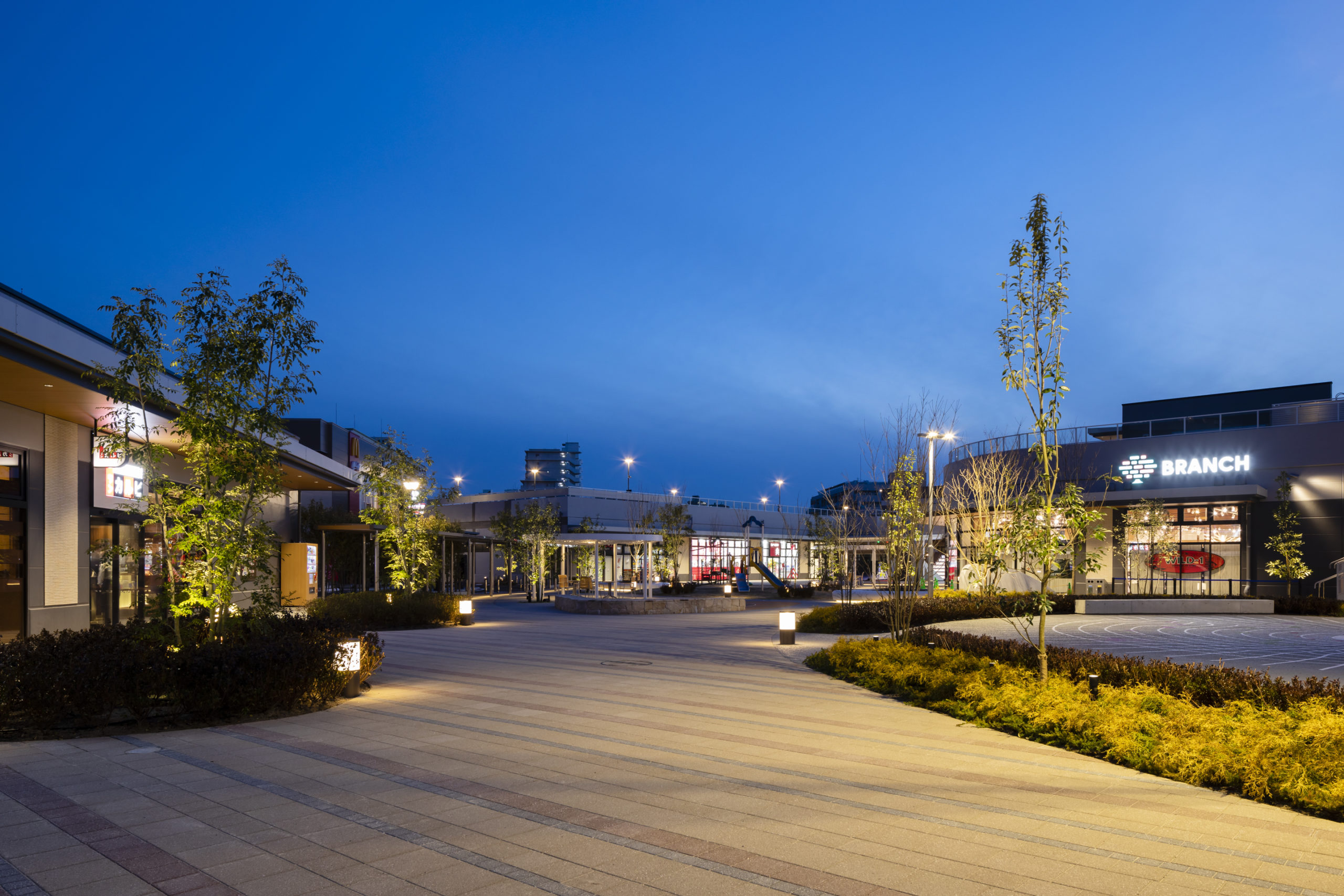 また、既存公園である「千代東緑地」と一体化させることで、公園の中にあるような商業施設を実現した。